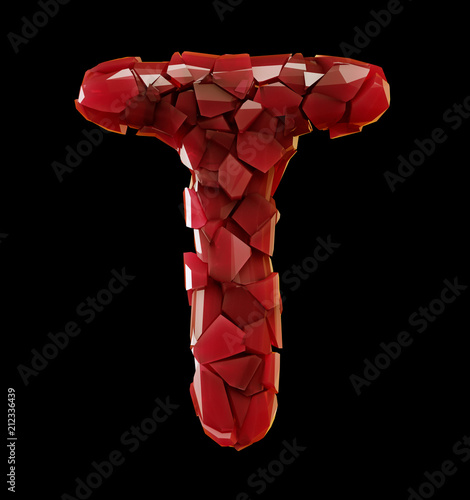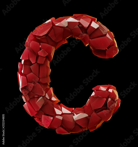 Alphabet Made Of Plastic Shards Red Color Isolated On Black